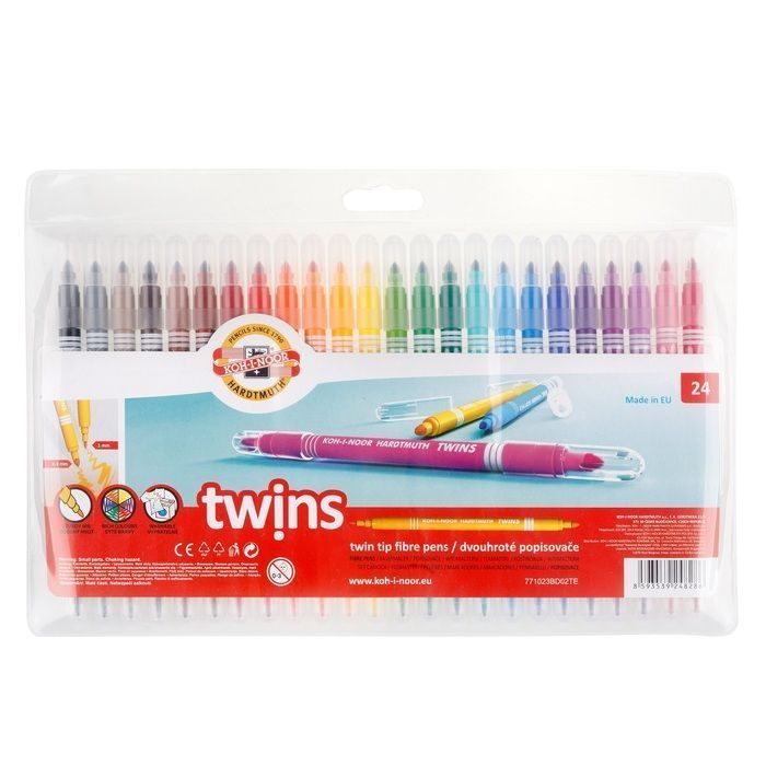 Фломастеры от легендарного европейского производителя KOH-I-NOOR! Яркие и насыщенные цвета позволят перенести на бумагу любые фантастические сюжеты. Фломастеры двухсторонние 18 цветов TWIN смываемые, вентилируемый колпачок. Предназначены для рисования и раскрашивания на бумаге и картоне. Фломастеры Koh-I-Noor TWIN прекрасно подойдут для дошкольного и школьного творчества.