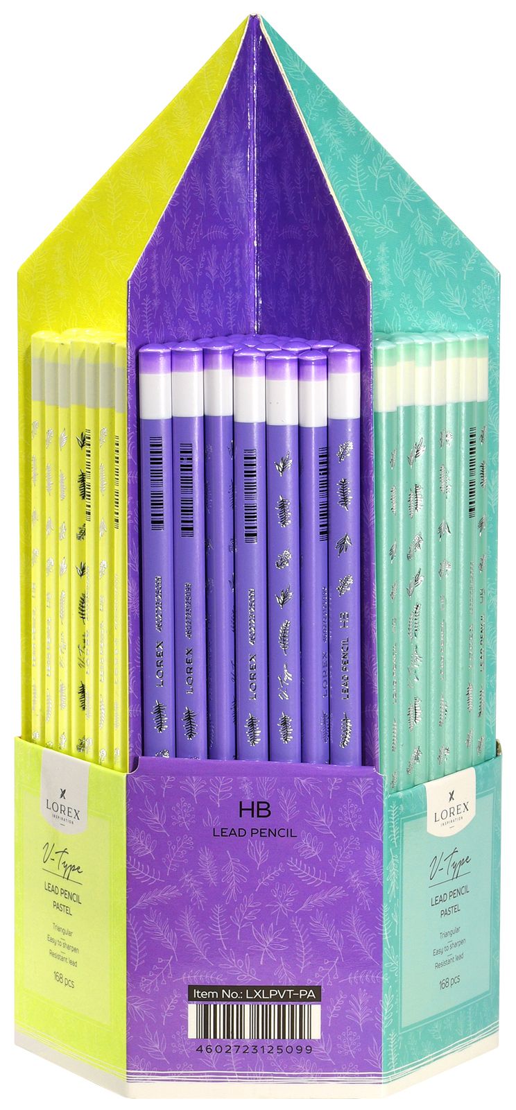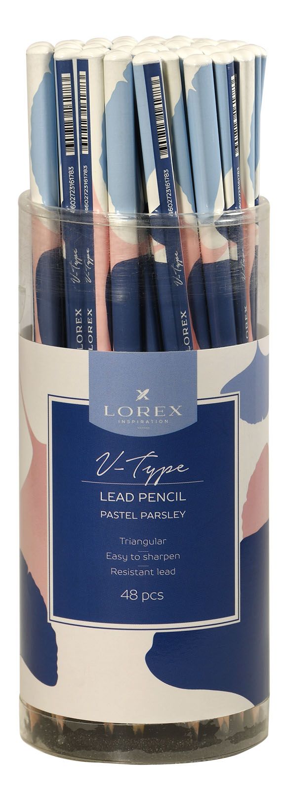 Наличие европодвеса: Нет Мягкость грифеля: НВ Цвет корпуса: ассорти Наличие индивидуального штрих-кода: Да Заточенный: Да Форма корпуса: трехгранный Мин. партия и варианты упаковок: 1 / 168 / 1008 Карандаш чернографитный деревянный LOREX V-TYPE PASTEL НВ заточенный, трехгранный, принт на корпусе, тубус