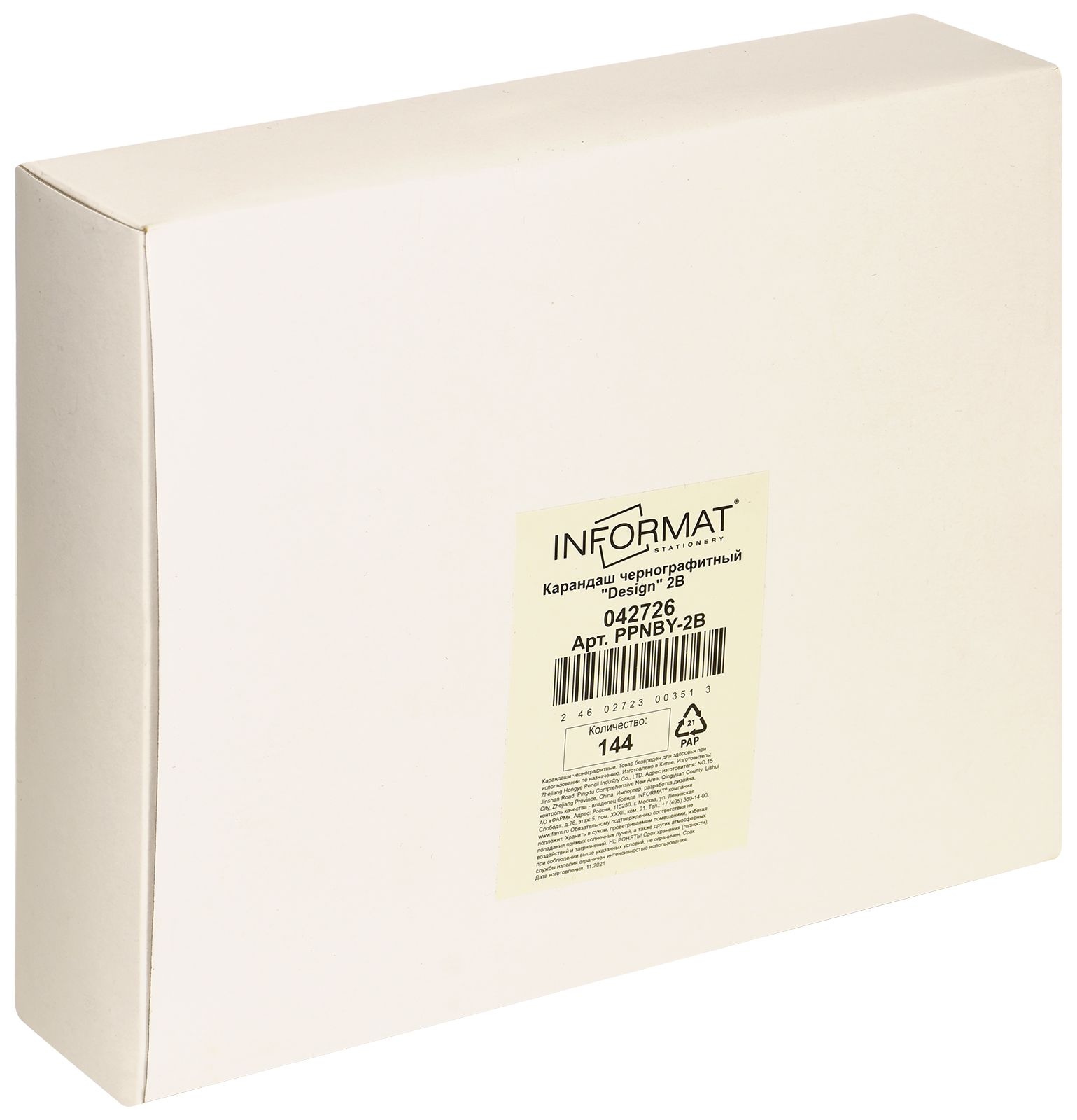 Наличие европодвеса: Нет Мягкость грифеля: В Цвет корпуса: оранжевый Наличие индивидуального штрих-кода: Да Заточенный: Да Форма корпуса: шестигранный Мин. партия и варианты упаковок: 1 / 144 / 2880 Карандаш чернографитный деревянный INFORMAT Design В заточенный, шестигранный, принт на корпусе, картонная коробка