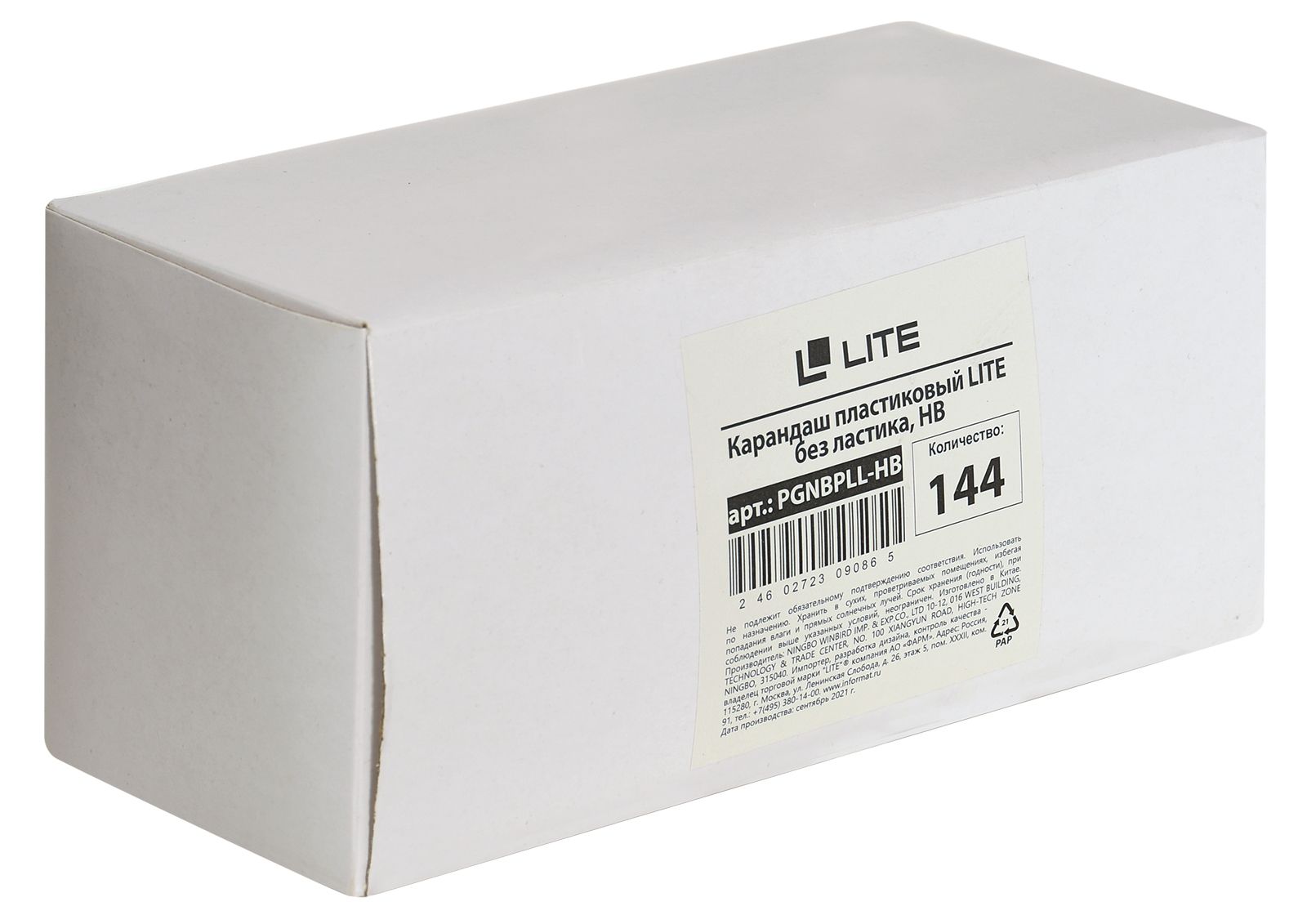 Наличие европодвеса: Нет Мягкость грифеля: НВ Цвет корпуса: черный Наличие индивидуального штрих-кода: Да Заточенный: Да Форма корпуса: шестигранный Мин. партия и варианты упаковок: 1 / 144 / 1152 Карандаш чернографитный пластиковый LITE НВ заточенный, шестигранный, картонная коробка