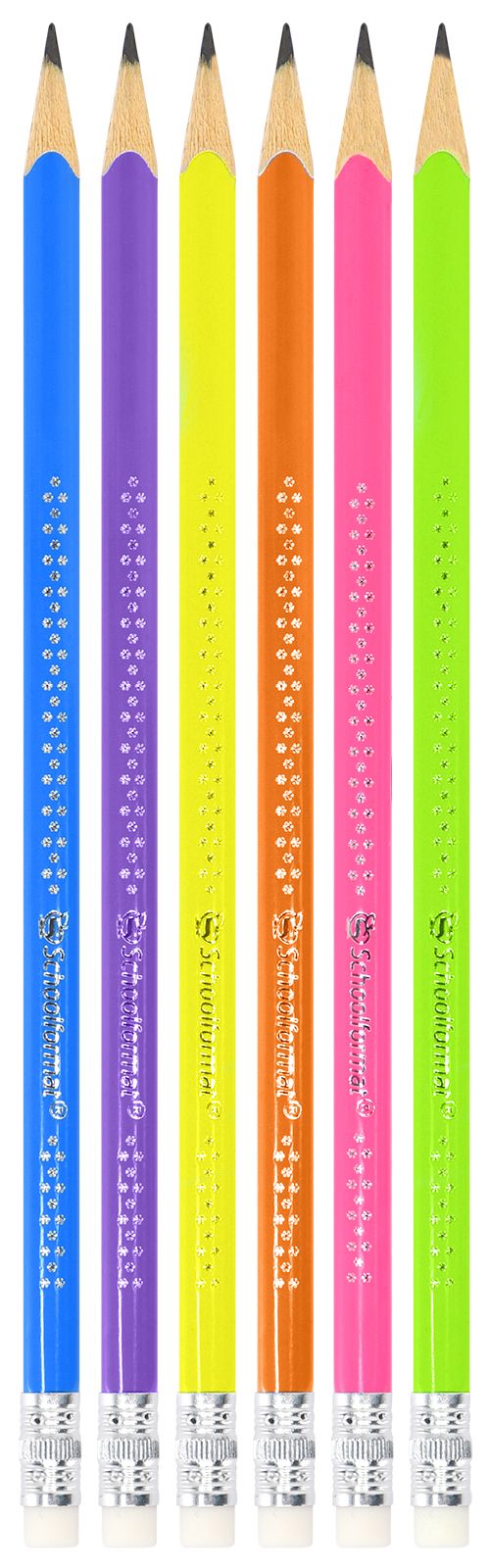 Наличие европодвеса: Нет Мягкость грифеля: НВ Цвет корпуса: ассорти Наличие индивидуального штрих-кода: Да Заточенный: Да Форма корпуса: трехгранный Мин. партия и варианты упаковок: 1 / 48 / 576 / 2304 Карандаш чернографитный деревянный INFORMAT NEON НВ с ластиком, заточенный, трехгранный, принт на корпусе, тубус