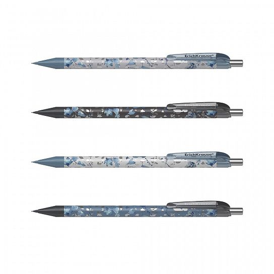 Механический карандаш круглой формы с матовым корпусом. Четыре дизайна корпуса с фольгированными элементами с покрытием soft touch и хромированной кнопкой. Оснащен удобным полупрозрачным клипом. Твердость HB. Диаметр грифеля - 0.5 мм.