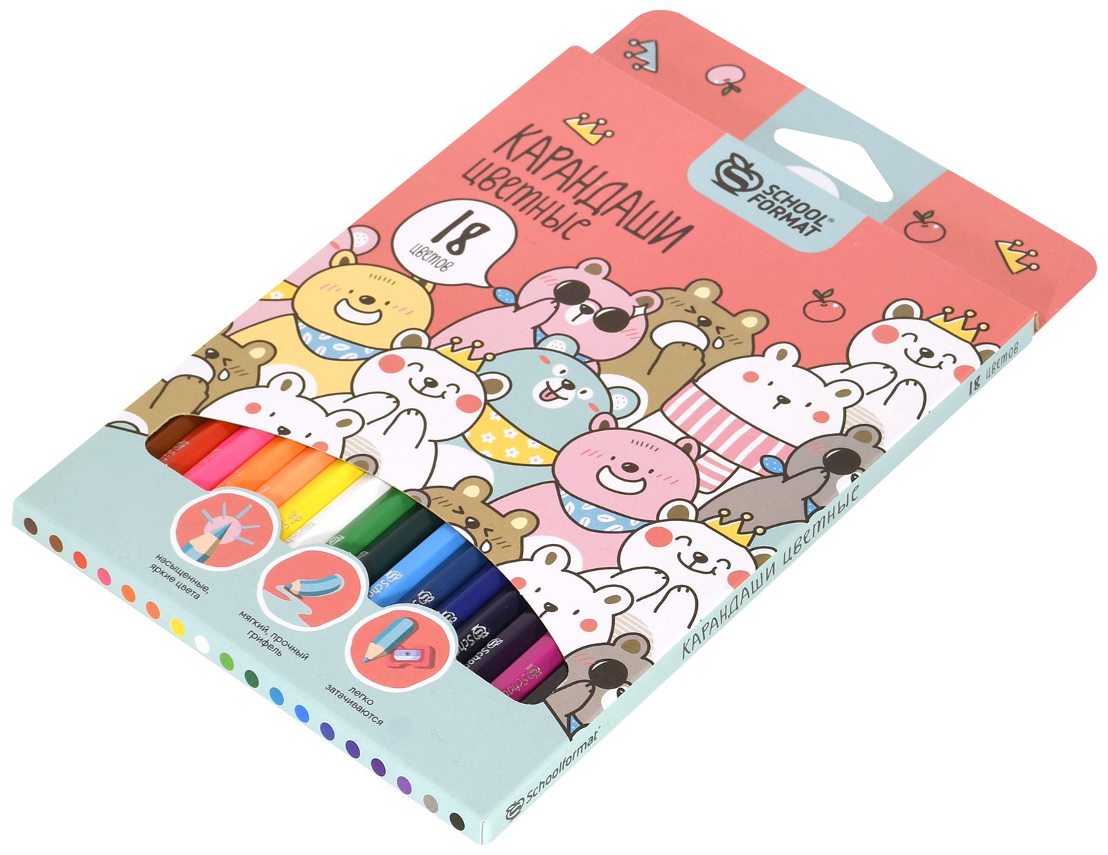 Материал: дерево Количество цветов: 18 Наличие европодвеса: Да Упаковка: картонная упаковка Мягкость грифеля: 2М Вид товара: Набор цветных карандашей Мин. партия и варианты упаковок: 1 / 8 / 160 Набор цветных карандашей Schoolformat МИЛЫЕ МЕДВЕЖАТА 18 цв. шестигранные, деревянные, в картонной упаковке