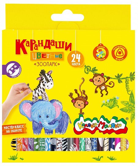 Материал: дерево Количество цветов: 24 Наличие европодвеса: Да Упаковка: картонная упаковка Мягкость грифеля: 4М Вид товара: Набор цветных карандашей Мин. партия и варианты упаковок: 1 / 6 / 120 Набор цветных карандашей Каляка-Маляка 24 цв. шестигранные, деревянные, в картонной упаковке