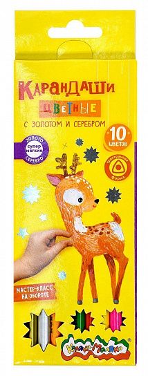 Материал: дерево Количество цветов: 10 Наличие европодвеса: Да Упаковка: картонная упаковка Мягкость грифеля: 5М Вид товара: Набор цветных карандашей Мин. партия и варианты упаковок: 1 / 24 / 288 Набор цветных карандашей Каляка-Маляка 10 цв. с золотом и серебром, трехгранные, деревянные, в картонной упаковке