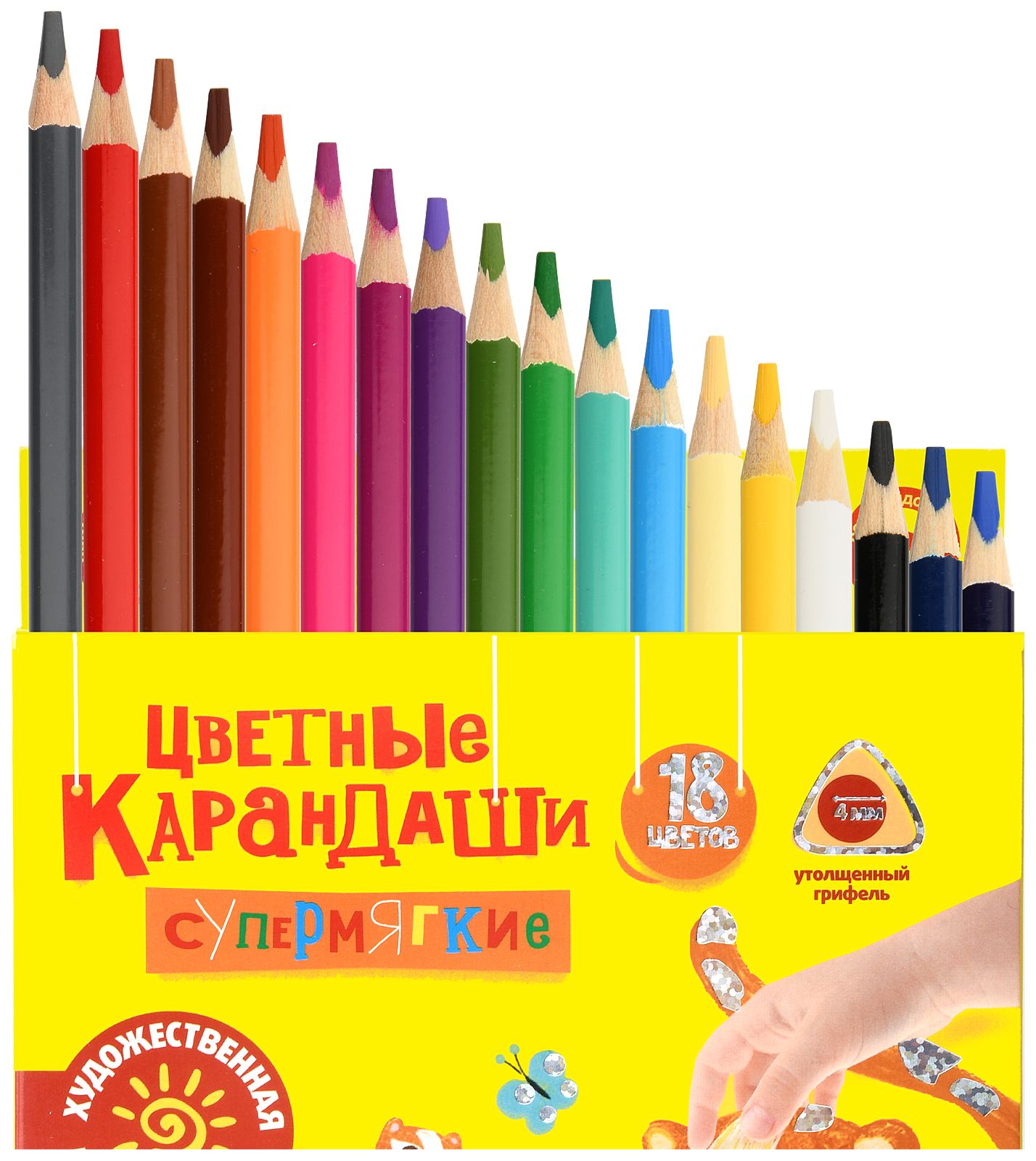 Материал: дерево Количество цветов: 18 Наличие европодвеса: Да Упаковка: картонная упаковка Мягкость грифеля: 4М Вид товара: Набор цветных карандашей Мин. партия и варианты упаковок: 1 / 8 / 160 -
