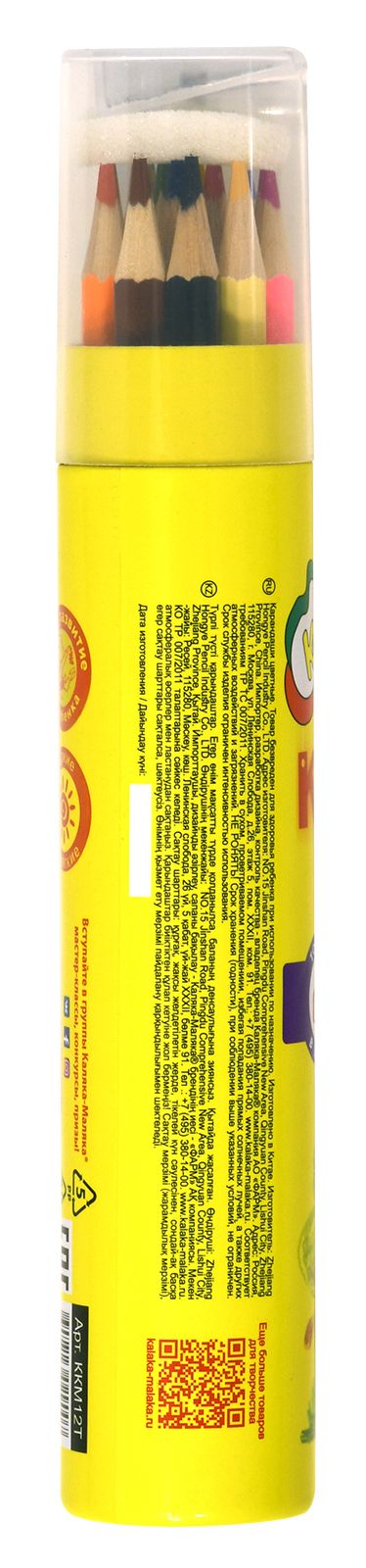 Материал: дерево Количество цветов: 12 Наличие европодвеса: Да Упаковка: картонная упаковка Мягкость грифеля: 4М Вид товара: Набор цветных карандашей Мин. партия и варианты упаковок: 1 / 12 / 240 Набор цветных карандашей Каляка-Маляка 12 цв. трехгранные, деревянные, в картонной упаковке