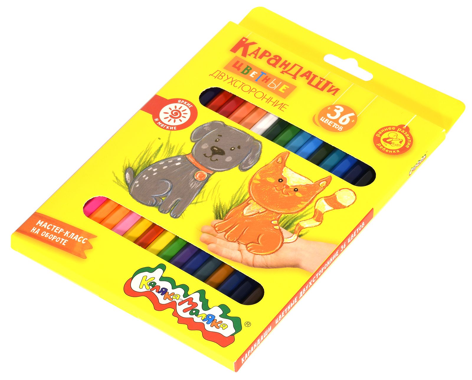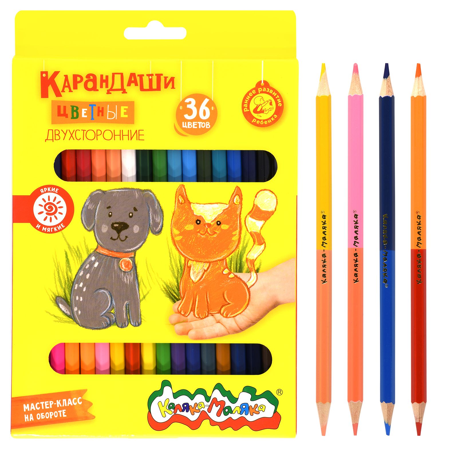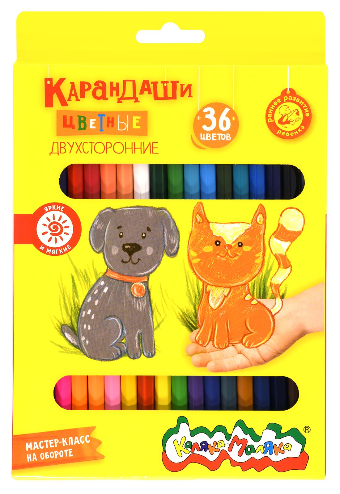 Материал: дерево Количество цветов: 36 Наличие европодвеса: Да Упаковка: картонная упаковка Мягкость грифеля: 4М Вид товара: Набор цветных карандашей Мин. партия и варианты упаковок: 1 / 12 / 120 Набор цветных карандашей Каляка-Маляка двухсторонние 36 цв. шестигранные, деревянные, в картонной упаковке