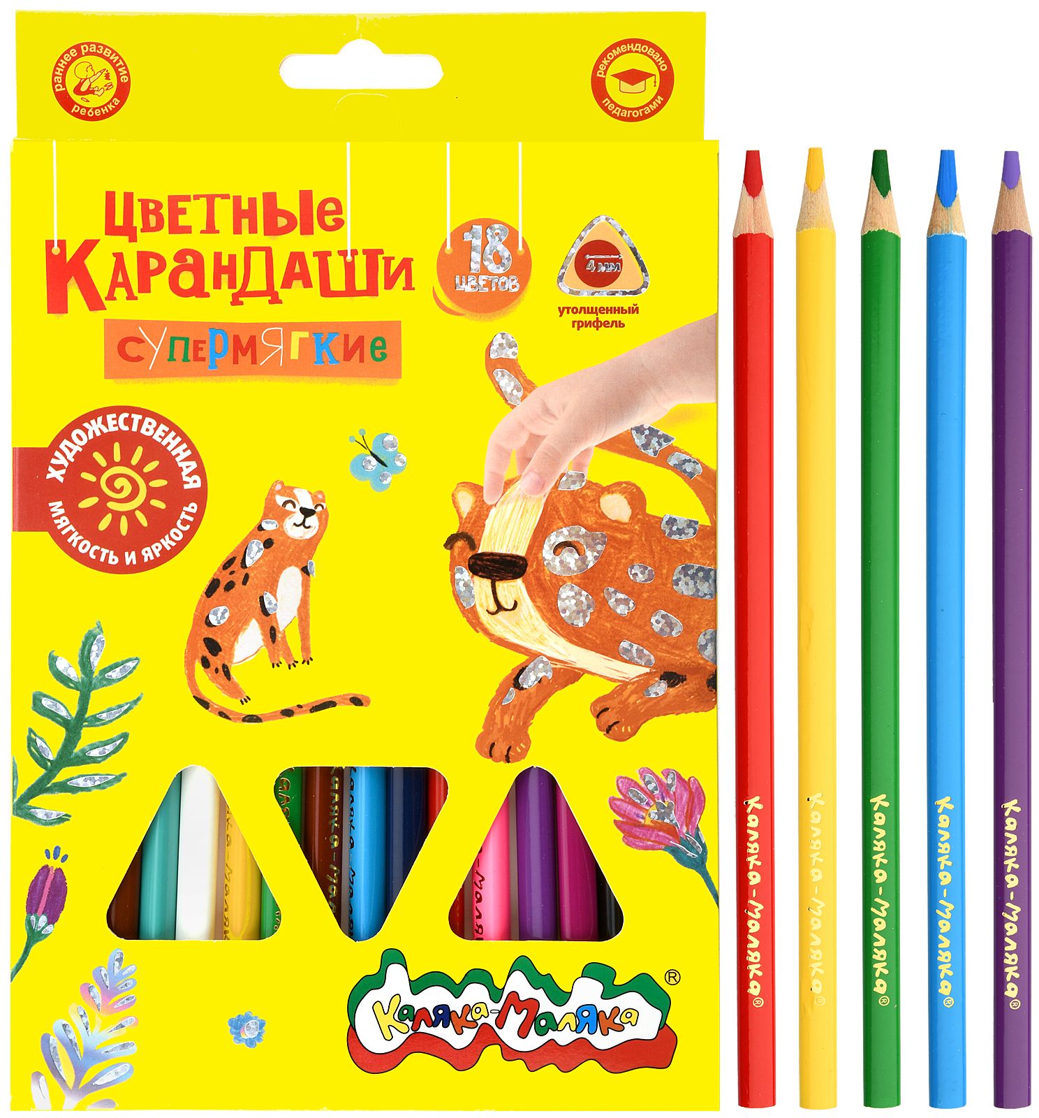 Материал: пластик Количество цветов: 18 Наличие европодвеса: Да Упаковка: картонная упаковка Мягкость грифеля: 4М Вид товара: Набор цветных карандашей Мин. партия и варианты упаковок: 1 / 8 / 96 Набор цветных карандашей Каляка-Маляка 18 цв. шестигранные, пластиковые, в картонной упаковке