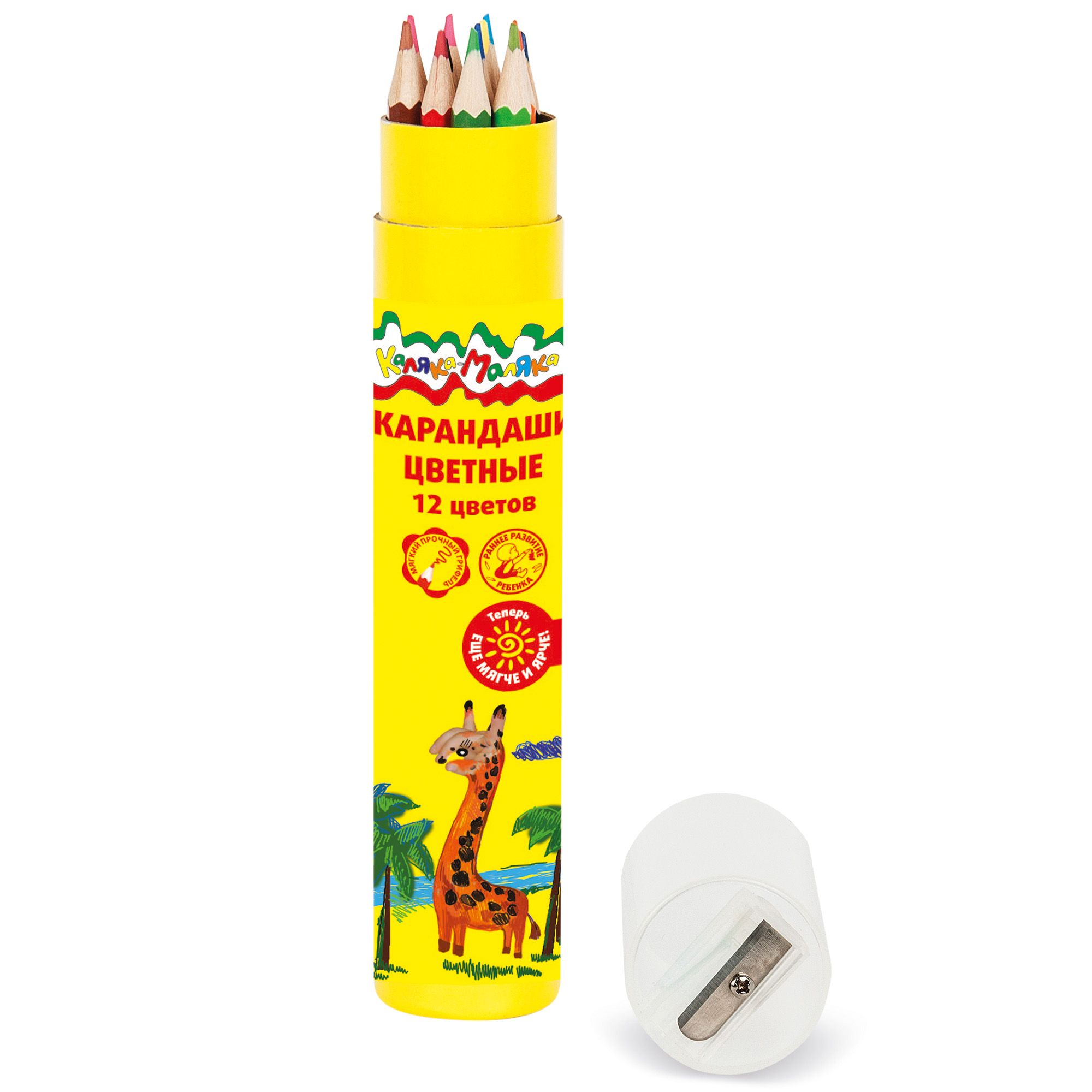 Материал: дерево Количество цветов: 12 Наличие европодвеса: Нет Упаковка: тубус Мягкость грифеля: 4М Вид товара: Набор цветных карандашей Мин. партия и варианты упаковок: 1 / 24 / 192 Набор цветных карандашей Каляка-Маляка 12 цв. шестигранные, деревянные, тубус с точилкой