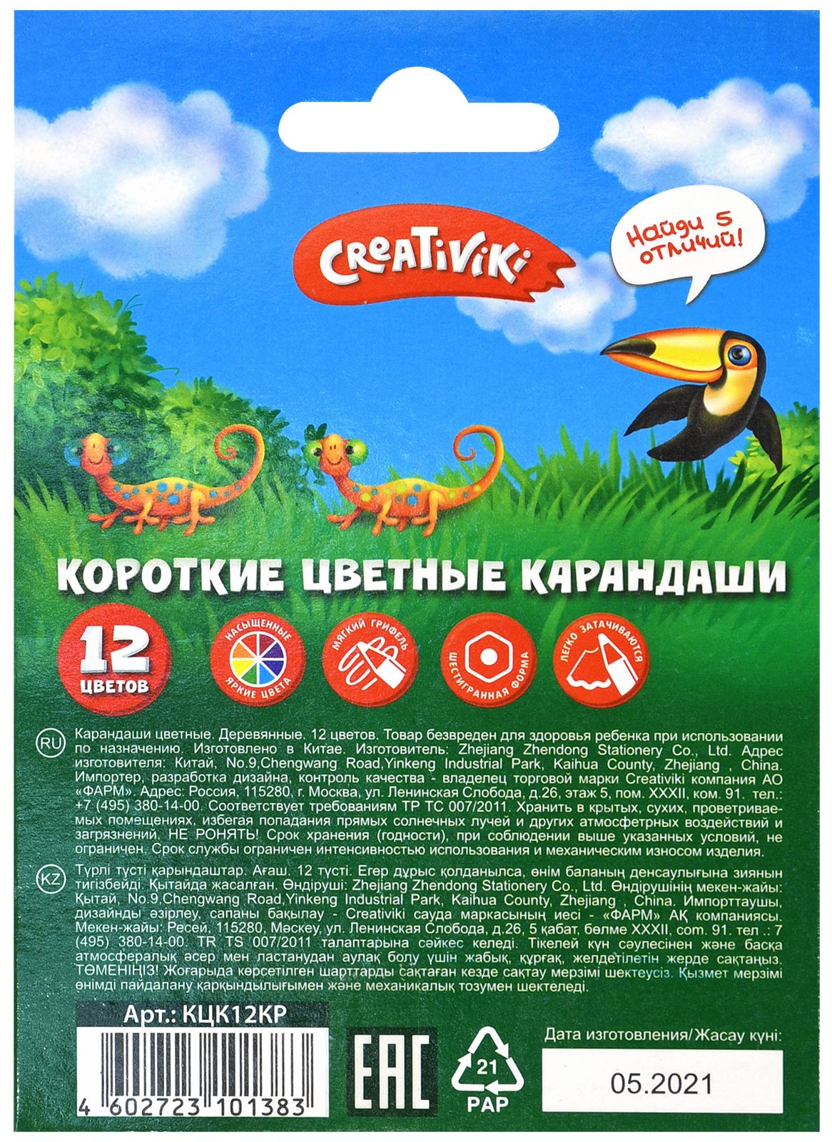 Материал: дерево Количество цветов: 12 Наличие европодвеса: Да Упаковка: картонная упаковка Мягкость грифеля: 2М Вид товара: Набор цветных карандашей Мин. партия и варианты упаковок: 1 / 24 / 480 Набор цветных карандашей Creativiki укороченные 12 цв. шестигранные, деревянные, в картонной упаковке