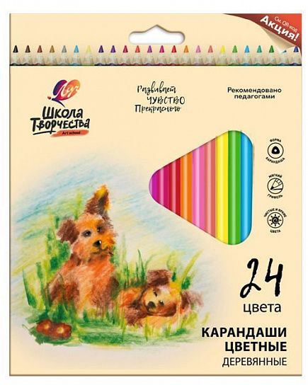 Материал: дерево Количество цветов: 24 Вид товара: Набор цветн.каранд Мин. партия и варианты упаковок: 1 / 6 -