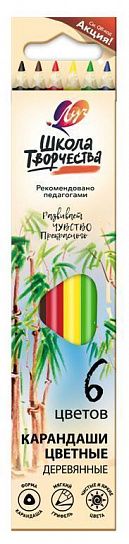 Материал: дерево Количество цветов: 6 Наличие европодвеса: Да Упаковка: картонная упаковка Мягкость грифеля: 4М Вид товара: Набор цветных карандашей Мин. партия и варианты упаковок: 1 / 96 Набор цветных карандашей Луч ШКОЛА ТВОРЧЕСТВА 6 цв. трехгранные, деревянные, в картонной упаковке