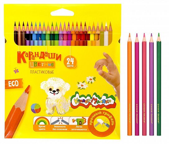 Материал: пластик Количество цветов: 24 Наличие европодвеса: Да Упаковка: картонная упаковка Мягкость грифеля: 4М Вид товара: Набор цветных карандашей Мин. партия и варианты упаковок: 1 / 6 / 72 Набор цветных карандашей Каляка-Маляка 24 цв. шестигранные, пластиковые, в картонной упаковке