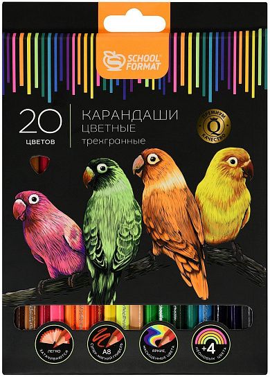 Материал: дерево Количество цветов: 20 Наличие европодвеса: Да Упаковка: картонная упаковка Мягкость грифеля: М Вид товара: Набор цветных карандашей Мин. партия и варианты упаковок: 1 / 12 / 144 Набор цветных карандашей Schoolformat ДИКАЯ ПЛАНЕТА 20 цв. трехгранные, деревянные, супермягкий грифель, в картонной упаковке