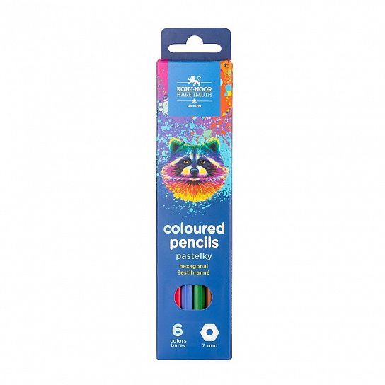 Материал: дерево Количество цветов: 6 Наличие европодвеса: Да Упаковка: картонная упаковка Мягкость грифеля: НВ Вид товара: Набор цветных карандашей Мин. партия и варианты упаковок: 1 Набор цветных карандашей Koh-I-Noor RACOON 6 цв. шестигранные, деревянные, в картонной упаковке