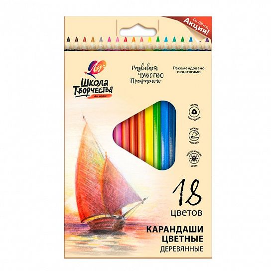 Материал: дерево Количество цветов: 18 Наличие европодвеса: Да Упаковка: картонная упаковка Мягкость грифеля: 4М Вид товара: Набор цветных карандашей Мин. партия и варианты упаковок: 1 / 48 Набор цветных карандашей Луч ШКОЛА ТВОРЧЕСТВА 18 цв. трехгранные, деревянные, в картонной упаковке