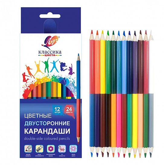 Материал: дерево Количество цветов: 24 Наличие европодвеса: Нет Упаковка: картонная упаковка Мягкость грифеля: 4М Вид товара: Набор цветных карандашей Мин. партия и варианты упаковок: 1 / 64 Набор цветных карандашей Луч КЛАССИКА двухсторонние 24 цв. круглые, деревянные, в картонной упаковке