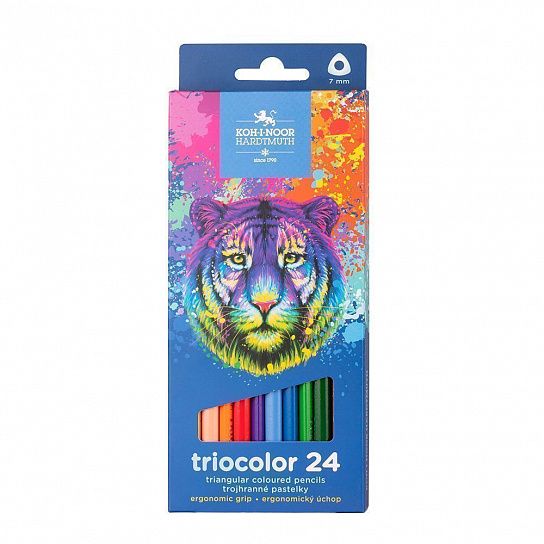 Материал: дерево Количество цветов: 24 Наличие европодвеса: Да Упаковка: картонная упаковка Мягкость грифеля: НВ Вид товара: Набор цветных карандашей Мин. партия и варианты упаковок: 1 Набор цветных карандашей Koh-I-Noor TRIOCOLOR TIGER 24 цв. трехгранные, деревянные, в картонной упаковке