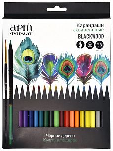 Материал: дерево Количество цветов: 36 Наличие европодвеса: Да Упаковка: картонная упаковка Мягкость грифеля: 8М Вид товара: Набор акварельных карандашей Мин. партия и варианты упаковок: 1 / 4 / 64 Набор акварельных карандашей АРТформат Blackwood 36 цв. трехгранные, деревянные, супермягкий грифель, с кистью, в картонной упаковке