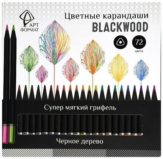 Материал: дерево Количество цветов: 72 Наличие европодвеса: Нет Упаковка: картонная упаковка Мягкость грифеля: 8М Вид товара: Набор цветных карандашей Мин. партия и варианты упаковок: 1 / 4 / 48 Набор цветных карандашей АРТформат Blackwood 72 цв. трехгранные, деревянные, супермягкий грифель, в картонной упаковке