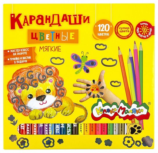 Материал: дерево Количество цветов: 120 Наличие европодвеса: Да Упаковка: картонная упаковка Мягкость грифеля: 6М Вид товара: Набор цветных карандашей Мин. партия и варианты упаковок: 1 / 2 / 12 Набор цветных карандашей Каляка-Маляка 120 цв. трехгранные и шестигранные, деревянные, с точилкой, принт на корпусе