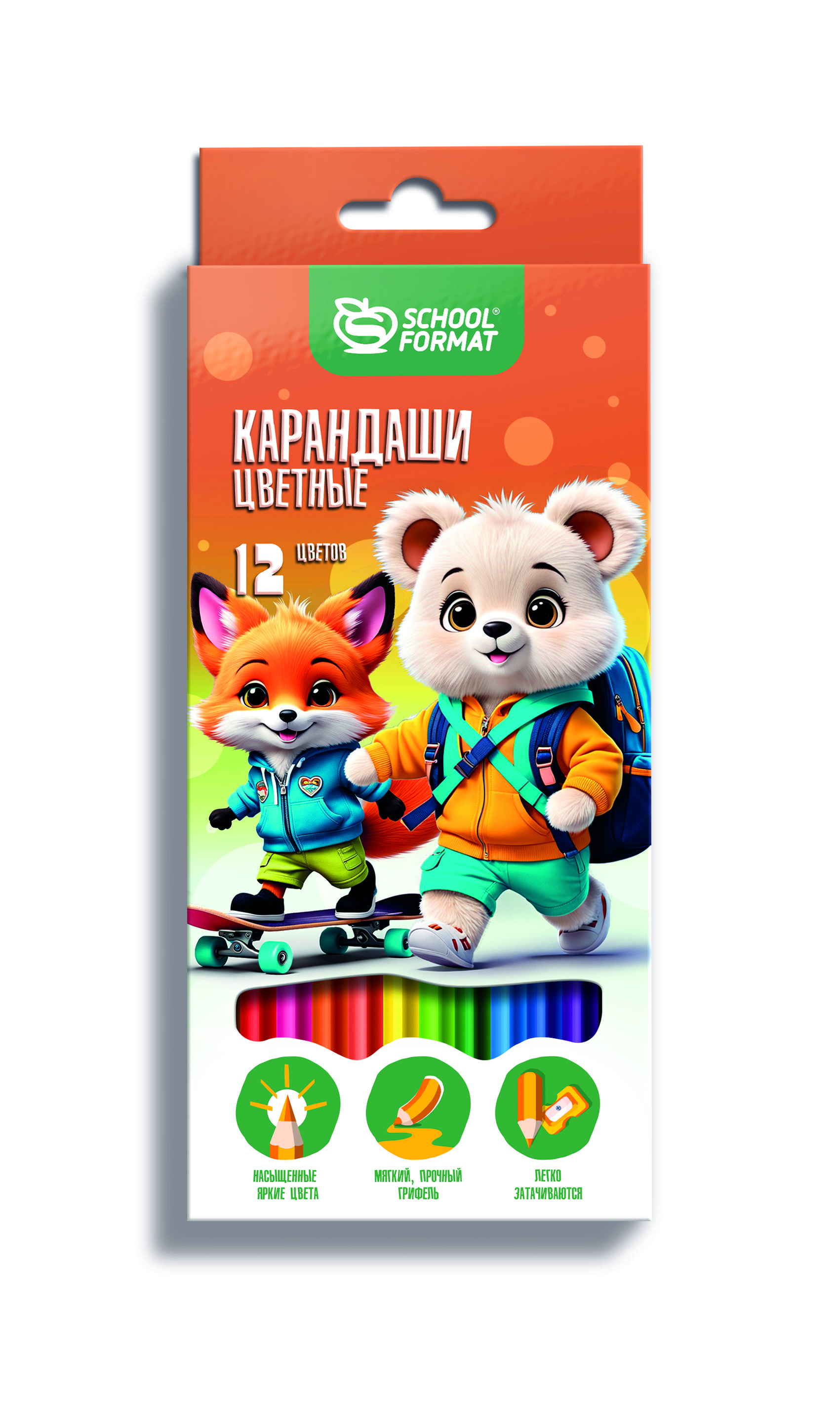 Материал: дерево Количество цветов: 12 Наличие европодвеса: Да Упаковка: картонная упаковка Мягкость грифеля: 2М-4М Вид товара: Набор цветных карандашей Мин. партия и варианты упаковок: 1 / 12 / 240 Набор цветн.каранд Schoolformat ДУШНЫЕ ЗВЕРУШКИ 12 цв. шестигран. корп. дерев. карт.уп.