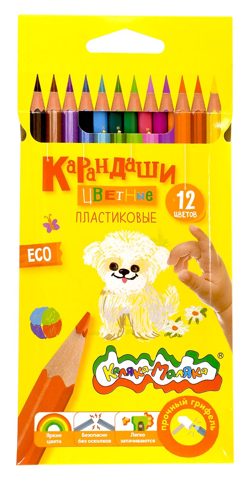 Материал: пластик Количество цветов: 12 Наличие европодвеса: Да Упаковка: картонная упаковка Мягкость грифеля: 4М Вид товара: Набор цветных карандашей Мин. партия и варианты упаковок: 1 / 12 / 144 Набор цветных карандашей Каляка-Маляка 12 цв. шестигранные, пластиковые, в картонной упаковке