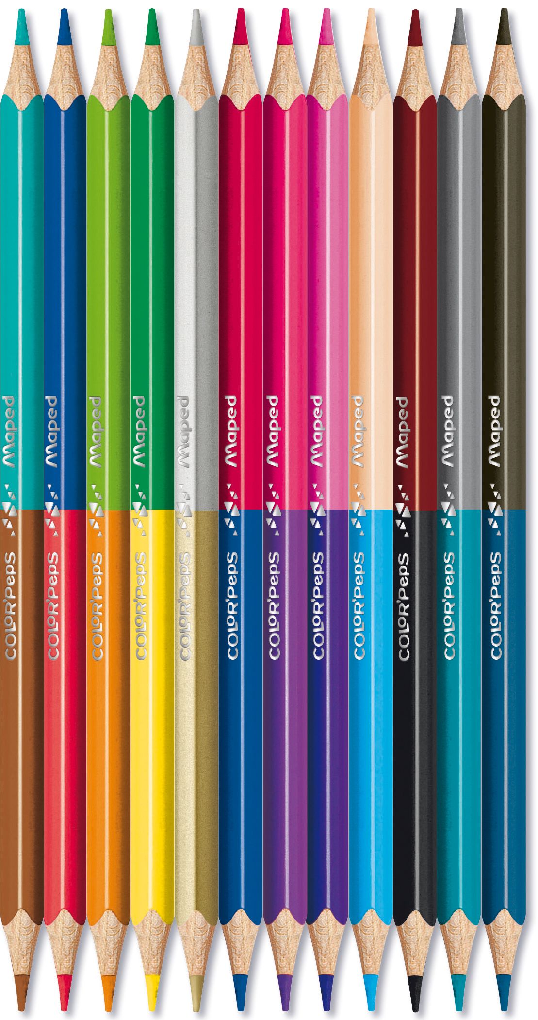 Материал: дерево Количество цветов: 24 Наличие европодвеса: Да Упаковка: картонная упаковка Мягкость грифеля: НВ Вид товара: Набор цветных карандашей Мин. партия и варианты упаковок: 1 / 12 / 180 Набор цветных карандашей MAPED COLOR'PEPS двухсторонние 24 цв. трехгранные, деревянные, в картонной упаковке