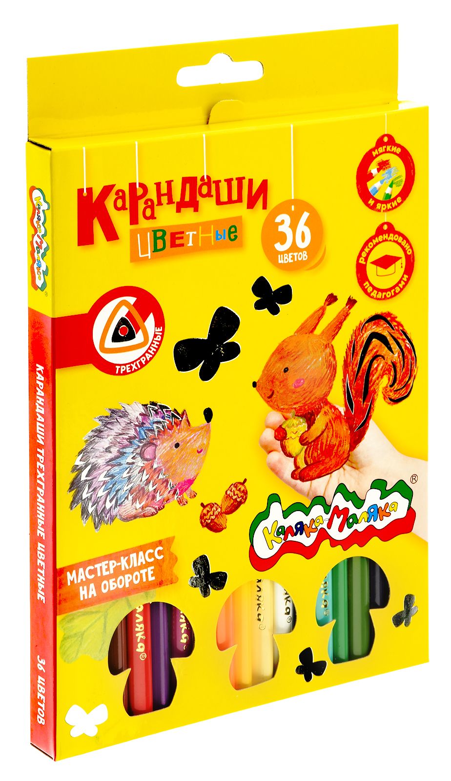 Материал: дерево Количество цветов: 36 Наличие европодвеса: Да Упаковка: картонная упаковка Мягкость грифеля: 4М Вид товара: Набор цветных карандашей Мин. партия и варианты упаковок: 1 / 8 / 80 Набор цветных карандашей Каляка-Маляка 36 цв. трехгранные, деревянные, в картонной упаковке