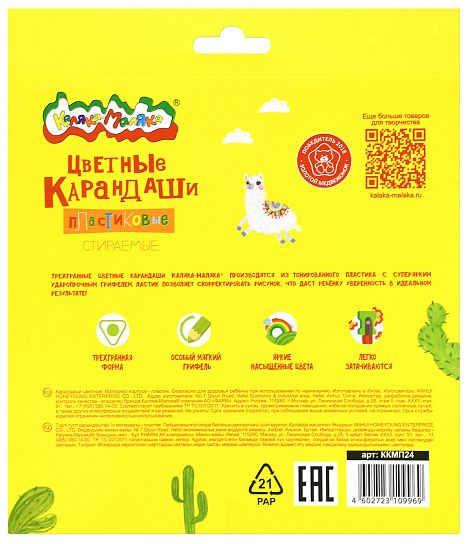 Пластиковые стираемые карандаши Каляка-Маляка® изготовлены из высококачественного пластика, они идеально стираются ластиком на корпусе карандаша, позволяя быстро устранить недочеты и помарки!
