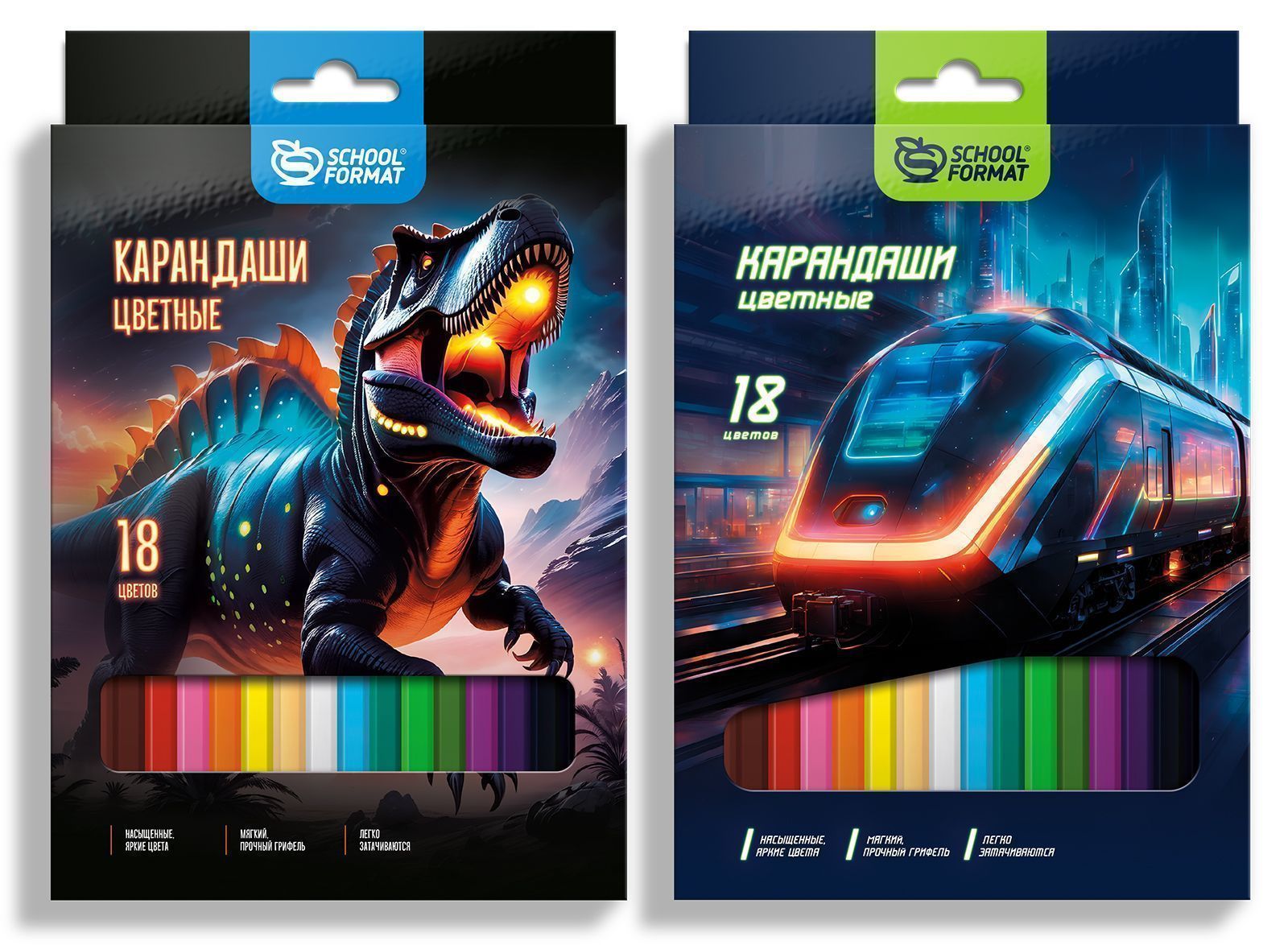 Карандаши Schoolformat® представлены сквозной серией для мальчиков с космической машиной и крутыми динозаврами на далекой планете. Каждая серия новых цветных карандашей разработана в соответствии с предпочтениями школьников, а также на основе модных тенденций.
