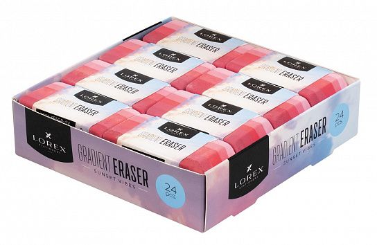 Цвет: градиент-металлик Размер: 56х26х10 мм Наличие европодвеса: Нет Упаковка: картонная упаковка Вид чертежных принадлежностей: Ластик Материал: резина Мин. партия и варианты упаковок: 1 / 24 / 720 Ластик LOREX GRADIENT SUNSET VIBES 56х26х10 мм, градиент, картонный держатель