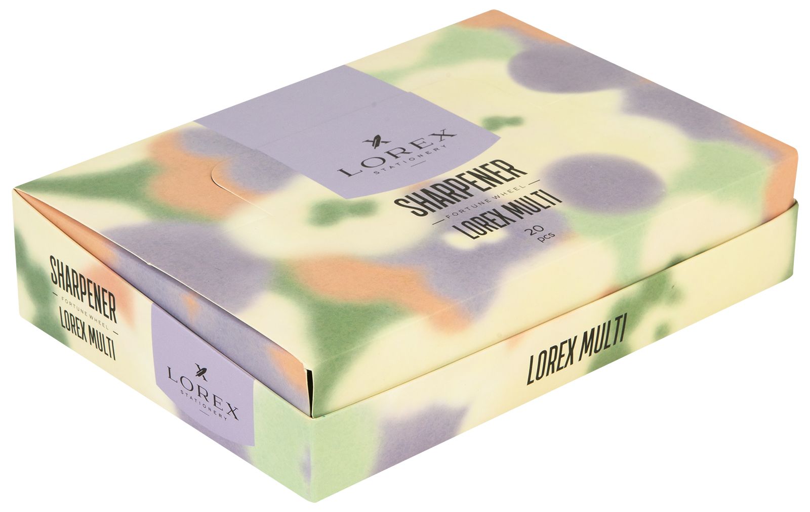 Цвет: ассорти Упаковка: дисплей Комплектация: с контейнером и ластиком Наличие индивидуального штрих-кода: Да Форма: круглая Количество отверстий для заточки: 1 отверстие Мин. партия и варианты упаковок: 1 / 20 / 120 / 480 Точилка LOREX FORTUNE WHEEL с контейнером и ластиком, ассорти, корпус пластик, 1 отверстие, в дисплее