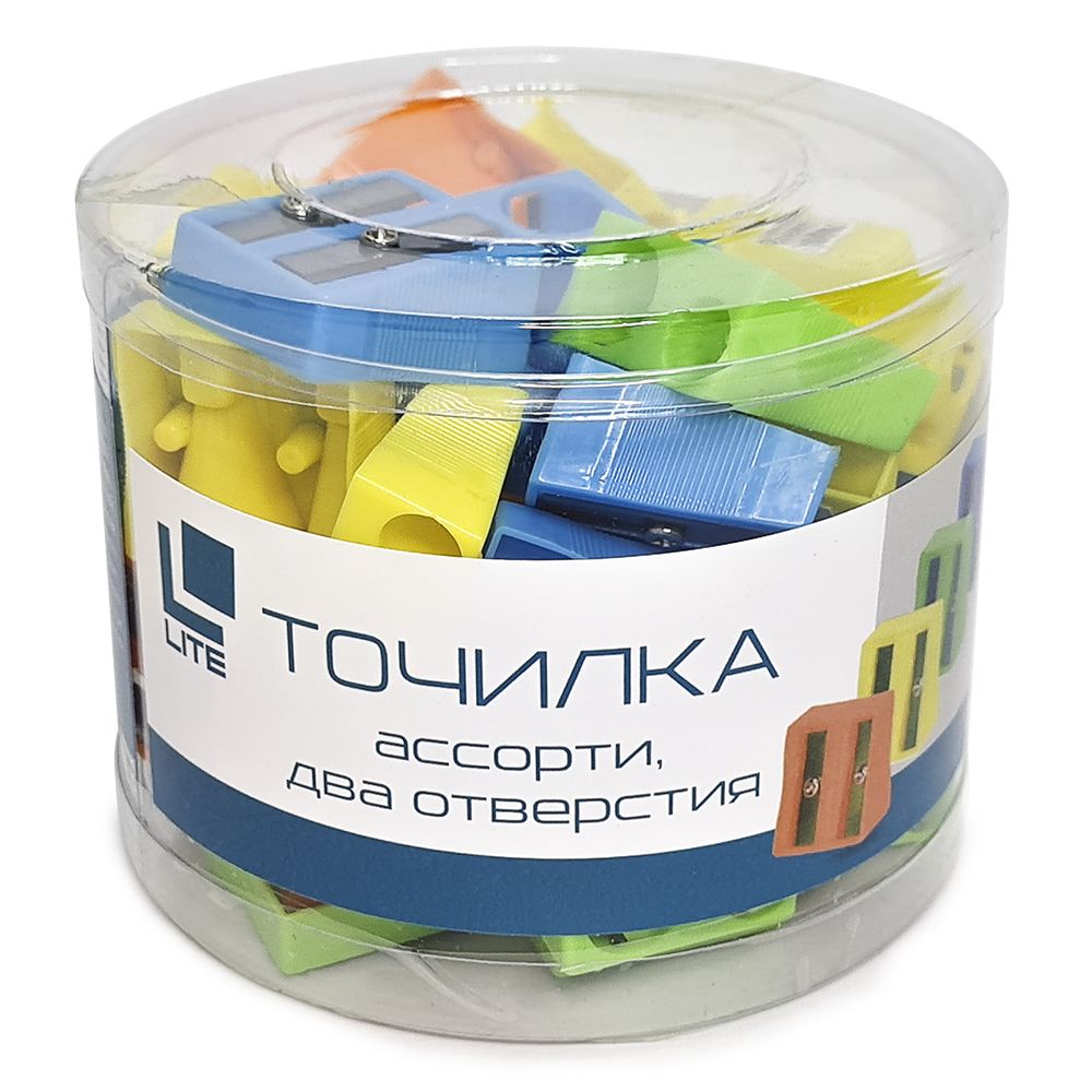 Цвет: ассорти Упаковка: тубус Наличие индивидуального штрих-кода: Да Форма: прямоугольная Количество отверстий для заточки: 1 отверстие Материал корпуса: пластик Мин. партия и варианты упаковок: 1 / 36 / 2880 Точилка LITE ассорти, корпус пластик, 1 отверстие, в тубусе