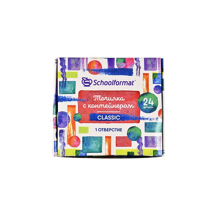 Цвет: ассорти Упаковка: дисплей Комплектация: с контейнером Наличие индивидуального штрих-кода: Да Форма: прямоугольная Количество отверстий для заточки: 1 отверстие Мин. партия и варианты упаковок: 1 / 24 / 1440 Точилка Schoolformat Classic с контейнером, ассорти, корпус пластик, 1 отверстие, в дисплее