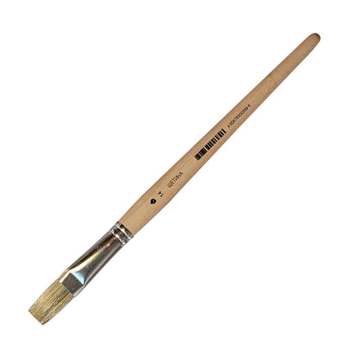 Основной показатель, по которому оцениваются щетинные кисти, - упругость. Чем гуще краска, тем тверже должен быть волос. Вслед за упругостью важнейшей характеристикой является расщепленный кончик - он способствует хорошей наполняемости кисти и ровному нанесению краски. Кисть предназначена для работы с "тяжелыми" красками: маслом, акрилом, темперой, гуашью. Ручка кисти деревянная пропитанная, обойма жестяная шовная.