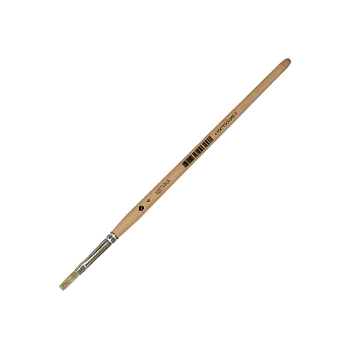 Основной показатель, по которому оцениваются щетинные кисти, - упругость. Чем гуще краска, тем тверже должен быть волос. Вслед за упругостью важнейшей характеристикой является расщепленный кончик - он способствует хорошей наполняемости кисти и ровному нанесению краски. Кисть предназначена для работы с "тяжелыми" красками: маслом, акрилом, темперой, гуашью. Ручка кисти деревянная пропитанная, обойма жестяная шовная.