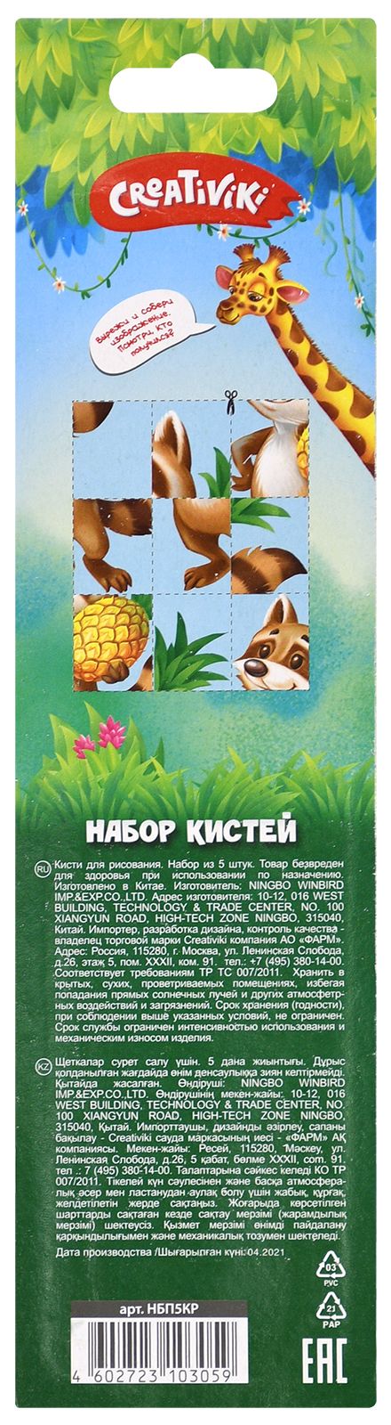 Количество в упаковке, шт: 5 Вид товаров: Набор кистей Ворс: пони Наличие европодвеса: Да Упаковка: блистер Комплектность набора кистей: № 1,2,3,4,6 круглые - пони Мин. партия и варианты упаковок: 1 / 12 / 240 Набор кистей 5 шт Creativiki № 1,2,3,4,6 круглые - пони