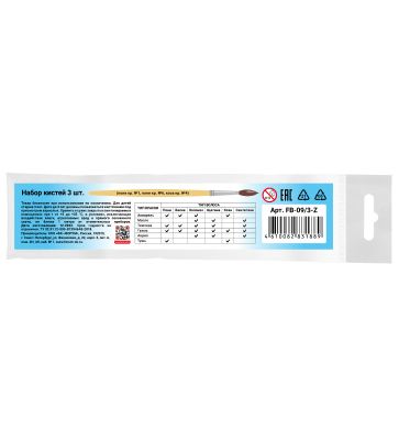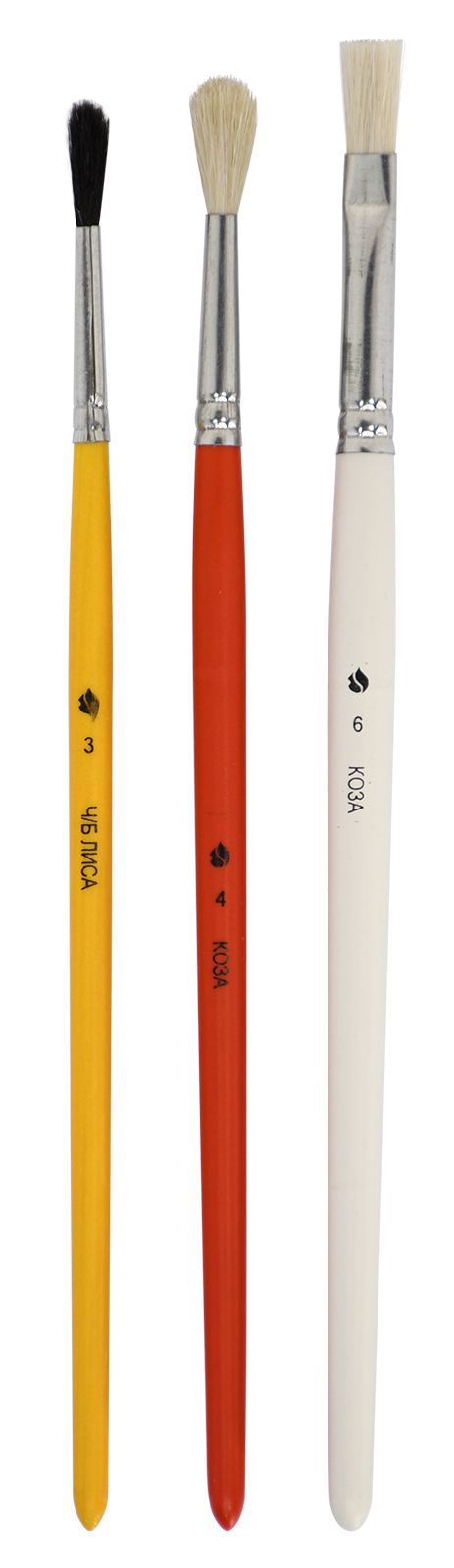 Количество в упаковке, шт: 3 Вид товаров: Набор кистей Ворс: пони, коза Наличие европодвеса: Да Упаковка: пакет Комплектность набора кистей: № 3 круглая - коза, №4 круглая - пони, №6 плоская - коза Мин. партия и варианты упаковок: 1 / 20 / 500 -