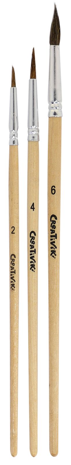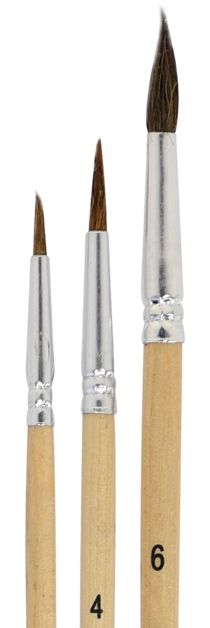 Количество в упаковке, шт: 3 Вид товаров: Набор кистей Ворс: пони Наличие европодвеса: Да Упаковка: блистер Комплектность набора кистей: № 2,4,6 круглые - пони Мин. партия и варианты упаковок: 1 / 24 / 480 -