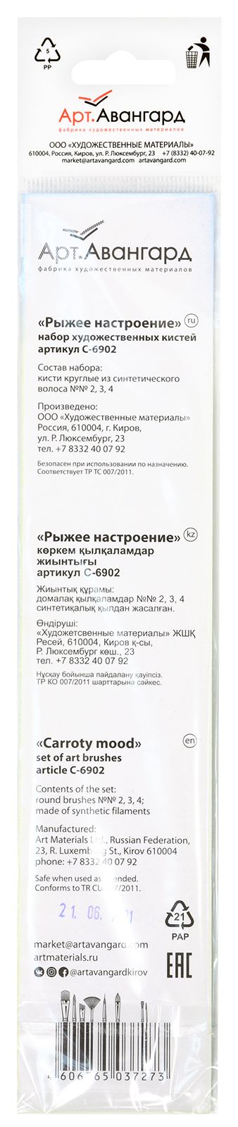 Количество в упаковке, шт: 3 Вид товаров: Набор кистей Ворс: синтетика Наличие европодвеса: Да Упаковка: пакет Комплектность набора кистей: № 2,3,4 круглые - синтетика Мин. партия и варианты упаковок: 1 / 20 / 500 Набор кистей 3 шт АртАвангард РЫЖЕЕ НАСТРОЕНИЕ № 2,3,4 круглые - синтетика