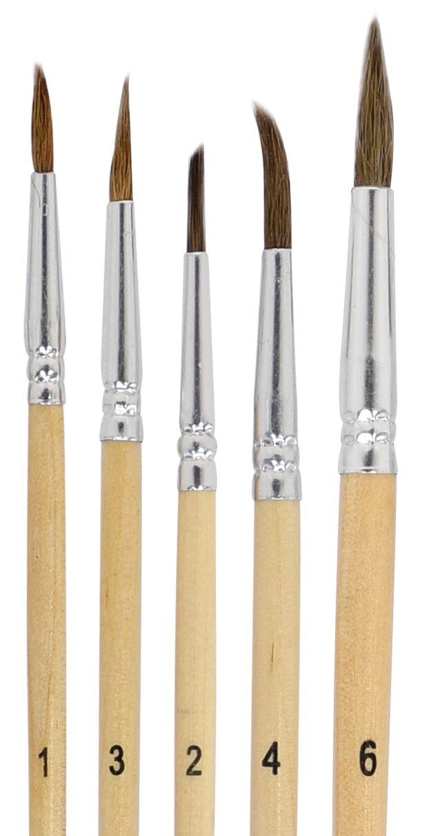 Количество в упаковке, шт: 5 Вид товаров: Набор кистей Ворс: белка Наличие европодвеса: Да Упаковка: пакет Комплектность набора кистей: № 1,2,3,4,5 круглые - белка Мин. партия и варианты упаковок: 1 / 30 / 600 -