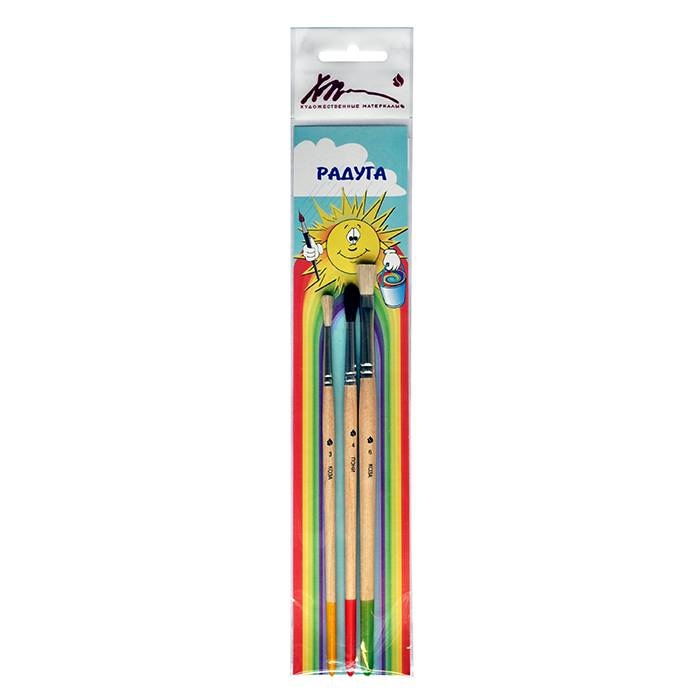 | Комплектность набора кистей: | № 3 круглая - коза, №4 круглая - пони, №6 плоская - коза |