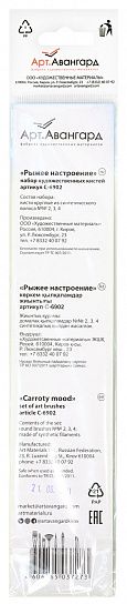 Ручка кистей в наборе пропитана лаком, содержит маркировку: товарный знак, номер кисти и вид волоса. Набор снабжен европодвесом. Обратная сторона подложки содержит всю необходимую информацию о продукте. Упаковка набора – полипропиленовый пакет.