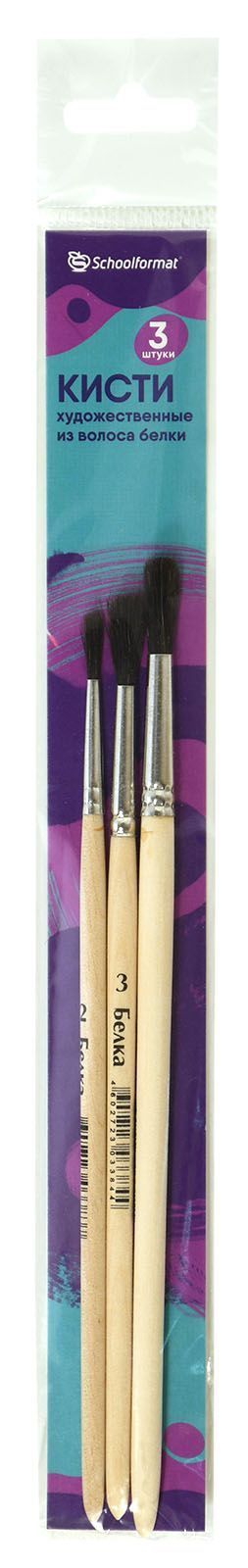 Набор кистей из волоса белки Schoolformat® включают как классические художественные кисти, так и специальные оформительские. Оформительские кисти отличаются плоской формой пучка и предназначены для работ с художественными красками - акрилом и маслом.
