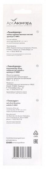 | Комплектность набора кистей: | № 1,2,3,4,5 круглые - синтетика |