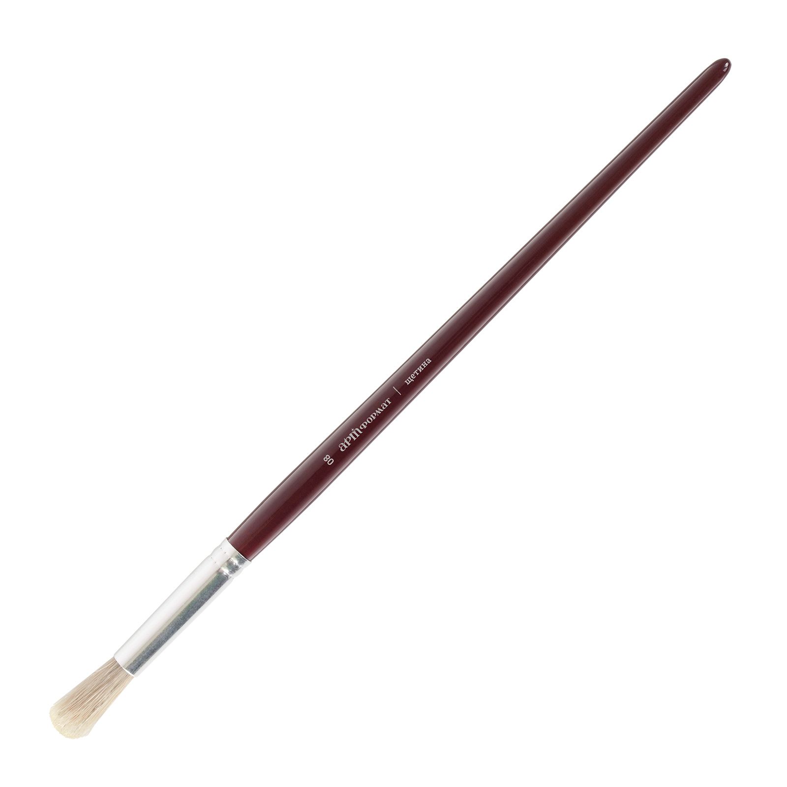 Кисти из щетины считаются лучшими для масляной живописи и широко используются художниками. Цельная металлическая обойма кистей АРТформат надежно и крепко соединяет ручку и ворс. Ручка кистей окрашена в насыщенный благородный тон красного дерева и покрыта ультра глянцевым лаком, благодаря чему кисть выглядит эффектно и профессионально. Ворс – натуральная щетина со спины кабана — жесткая, крепкая и упругая.Каждая кисть имеет необходимую маркировку на корпусе, которая включает размер, тип ворса, ТМ, штрих-код и артикул.