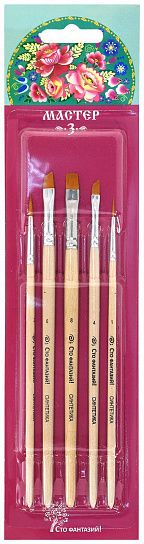 Количество в упаковке, шт: 5 Вид товаров: Набор кистей Ворс: синтетика Наличие европодвеса: Да Упаковка: блистер Комплектность набора кистей: № 6 плоская - синтетика, № 4,6 отводная - синтетика, № 1,2 круглая - синтетика Мин. партия и варианты упаковок: 1 / 5 / 200 -