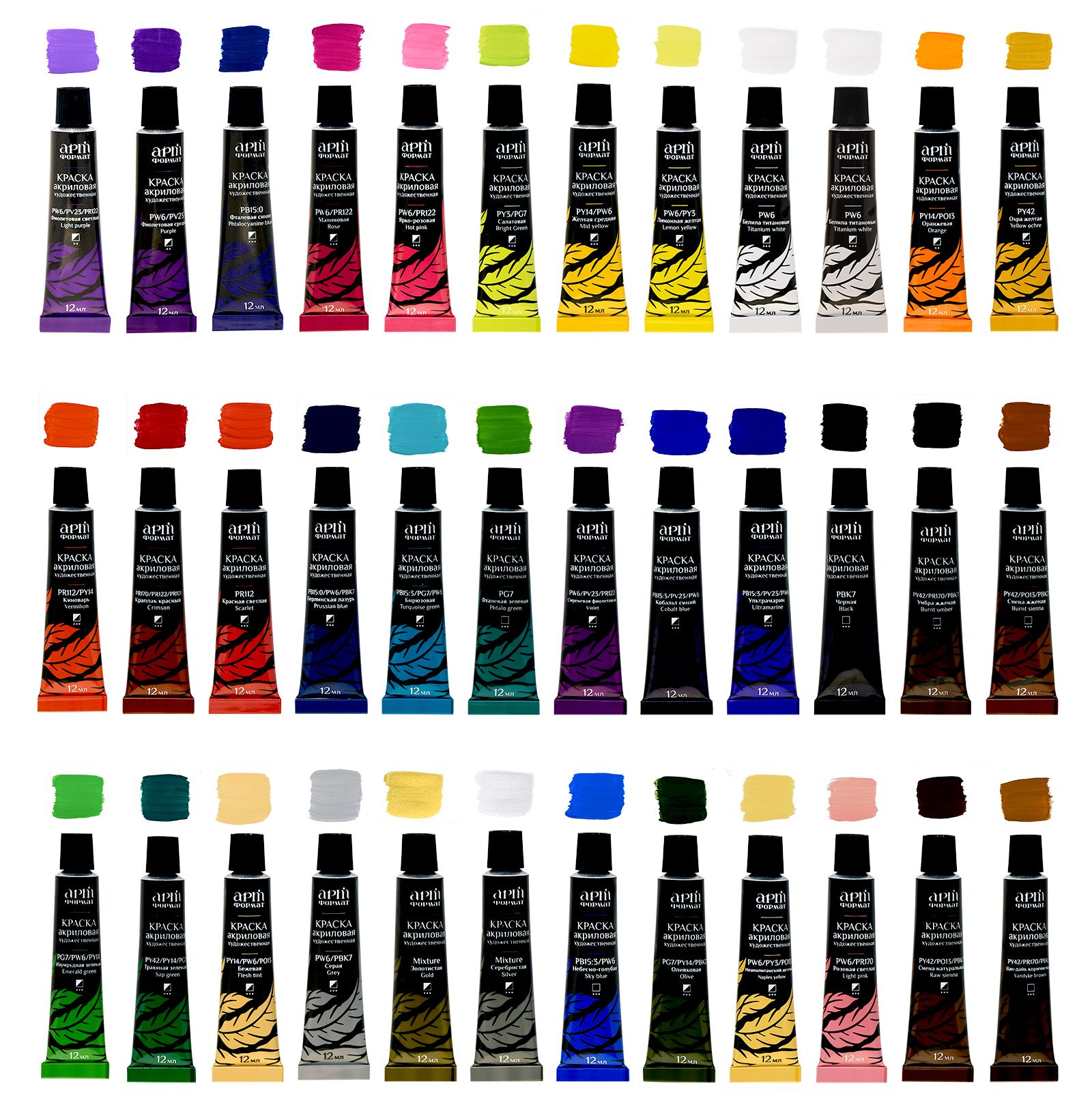 Объем, мл: 22 Количество цветов: 12 Наличие европодвеса: Нет Цвет: ассорти Упаковка: картонная упаковка Тип товара: художественные Мин. партия и варианты упаковок: 1 / 16 Краски акриловые художественные АРТформат 12 цветов по 22 мл ассорти